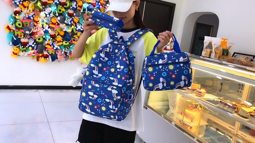 Women's Backpack Three-Piece Set Rainbow Print Student Schoolbag Large Capacity Backpack