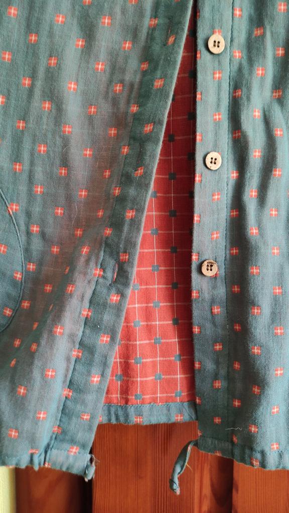 Thin fabric, similar to gauze, only woven in two layers. Length is 6cm too short, which can be a problem for tall people. Replacement button available Support helped me without any problems. THANKS 😘