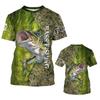 Bass Fishing Pattern 3D Print Men's Fashion Comfy Breathable T-Shirt, New Casual Round Neck Short Sleeve Tee For Spring Summer Men's Clothing