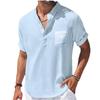 Men's Cotton and Linen Short-sleeved Summer Stand Collar T-shirt Half-cardigan Casual Sports Classic Short-sleeved Shirt