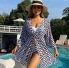 2024 New Women's Split Long Shirt Beach Swimwear European and American Foreign Trade New Bikini Swimwear Three Piece Set