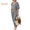 2 Pcs/Set Blouse Pants Set V Neck Long Sleeves Top Wide Leg Loose Elastic Waist Trousers OL Commute Casual Homewear Outfit