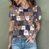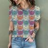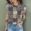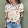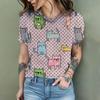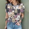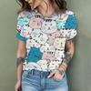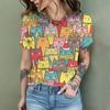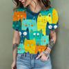 2024 New Fashion Women's T Shirt Cute Cat Printed Short Sleeve Round Neck Fun Pattern T Shirt Summer Home Casual Women's Tops