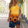 Women's Fashion Casual Printed Lapel Button Short Sleeve Clothing Straps Dress