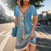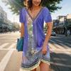Women's Fashionable Loose Fitting Retro Ethnic Style Printed Casual V-neck Dress