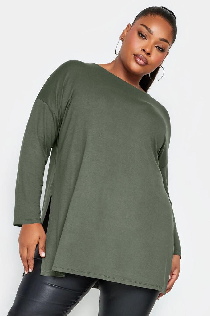Large Size Crew Neck Slit Detailed Long Sleeve Oversize Blouse is a Perfect Option for Those Looking for a Modern and Comfortable Style..