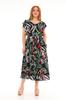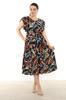 Flounce Sleeves Crew Neck Belted Floral Patterned Long Viscose Dress