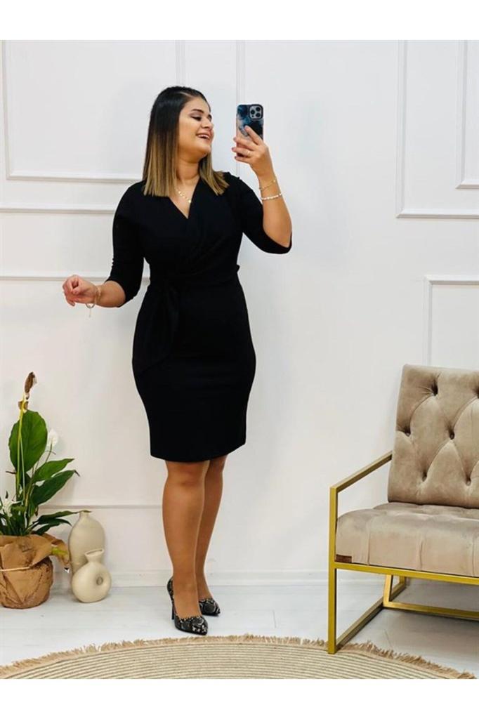 Lycra Crepe Above Knee Dress Black