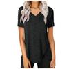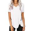 Summer Womens Trendy Irregular Hem Tops Sexy V-Neck T Shirts Short Sleeve Buttons Blouses Plain Daily Tees