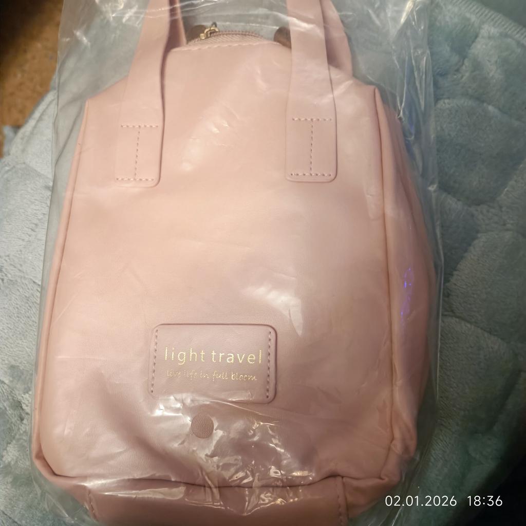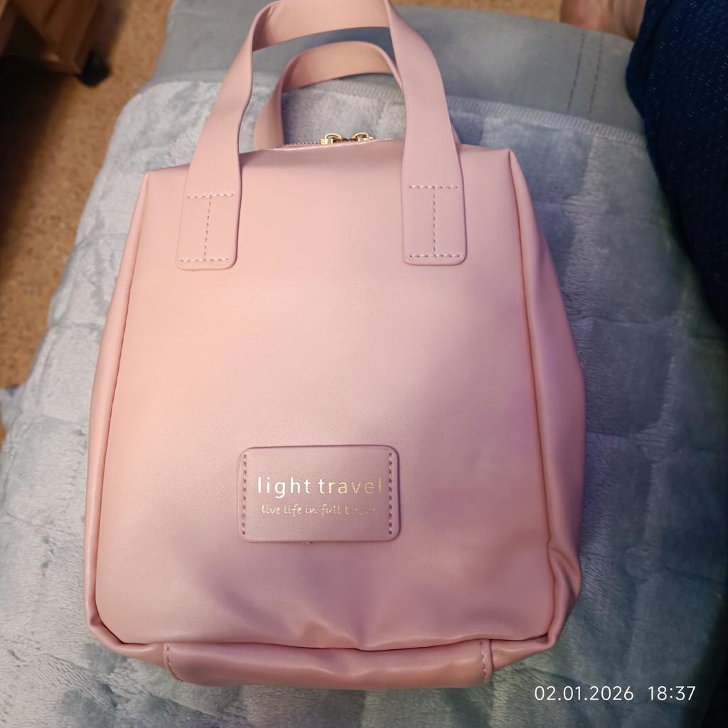 Delicate color, pleasant to the touch smell of a new bag, corresponds to the size. I took it as an organizer of bathroom accessories for travel, it will fit perfectly. I am happy with the order, I recommend it!