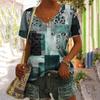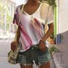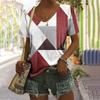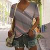 Vintage Women's T Shirt Summer Casual Short Sleeve T Shirt Fashion V Neck Striped Printed Pullover Womens Field Shopping T Shirt