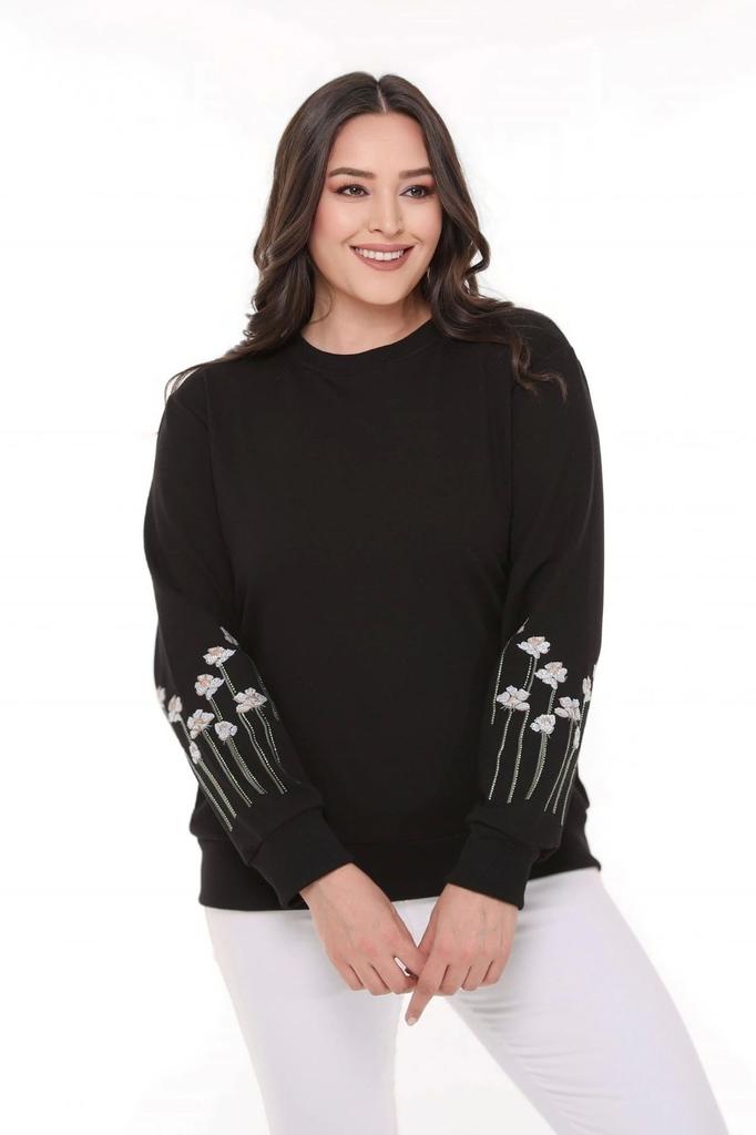 Women's Style Big Size Sweatshirt Sweatshirt With Flower Embroidery On Sleeves| Model Measurements. | Height 180cm, Chest: 100cm, Waist: 84cm, Hip: 117cm. Product Image Size: 44-46. | | pattern:PlusSize | Fabric Type:Knitted | color:Black | height:Regular ||Size: S/M, Chest: 84-94cm, Waist: 66-76cm, Hips: 92-102cm | To you: M/L, Chest: 90-100cm, Waist: 72-82cm, Hips: 98-108cm | To you: L/XL, Chest: 96-106cm, Waist: 78-88cm, Hips: 104-114cm | To you: XL/2XL, Chest: 102-112cm, Waist: 84-94cm, Hips: 110-120cm | To you: 2XL/3XL, Chest: 108-116cm, Waist: 90-98cm, Hips: 116-126cm | To you: 3XL/4XL, Chest: 112-122cm, Waist: 94-104cm, Hips: 122-132cm | To you: 4XL/5XL, Chest: 118-128cm, Waist: 100-110cm, Hips: 128-138cm | To you: 5XL/6XL, Chest: 124-134cm, Waist: 106-116cm, Hips: 134-144cm | To you: 6XL/7XL, Chest: 130-140cm, Waist: 112-122cm, Hips: 140-150cm | To you: 7XL/8XL, Chest: 136-146cm, waist: 118-128cm, Hips: 146-156cm | To you: 8XL/9XL, Chest: 142-152cm, Waist: 124-134cm, Hips: 152-162cm | To you: 9XL/10XL, Chest: 148-158cm, waist: 130-140cm, Hips: 158-168cm | To you: 10XL/11XL, Chest: 154-164cm, waist: 136-146cm, Hips: 164-174cm | To you: 11XL/12XL, Chest: 160-170cm, waist: 142-152cm, Hips: 170-180cm | To you: 12XL/13XL, Chest: 166-176cm, waist: 148-158cm, Hips: 176-186cm | To you: 13XL/14XL, Chest: 172-182cm, waist: 154-164cm, Hips: 182-192cm | To you: 14XL/15XL, Chest: 178-188cm, waist: 160-170cm, Hips: 188-198cm