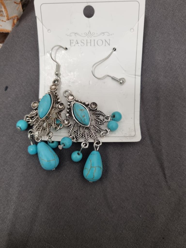 Retro Earrings, Water Drop Turquoise Temperament Earrings, Ethnic Turkish Blue Fringed Earrings.