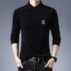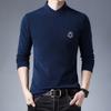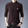 Spring and Autumn Double-sided Velvet Young and Middle-aged Solid Color Embroidered Stand Collar T-shirt Long-sleeved Fashion Men