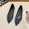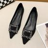 Women Flats Pointed Toe Boat Shoes Button Crystal Slip On Flat Shoes Faux Suede Comfortable Female Shoes Zapatos Mujer