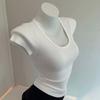 Slim Fit BM Style Threaded Large U-neck for Slimming and Breathable Solid Color Short Sleeves