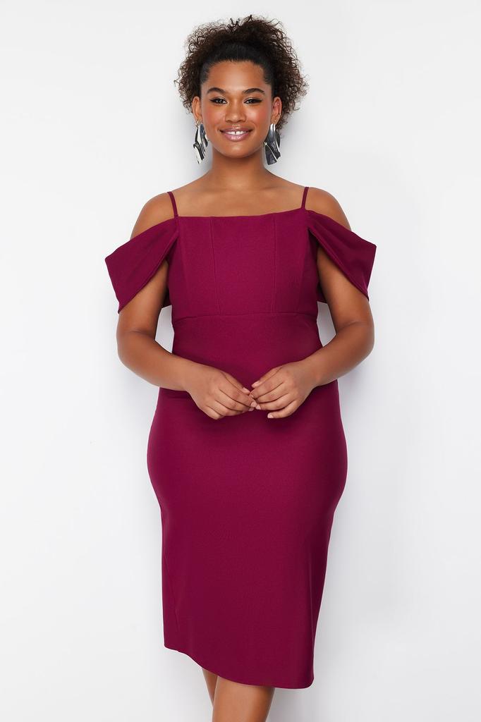 Women's Style Plus Size Purple Plain Bodycone Midi Woven Plus Size Dress