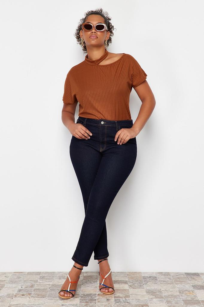 Women's Style Plus Size Dark Blue Estra Flexible Skinny Jeans