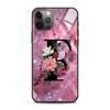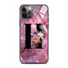 Tempered Glass Case For iPhone 14 12 11 Pro Max 13 12 Mini X XR XS Max 8 7 6s Plus Silicone Shell Letter A B Flowers Pink