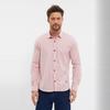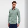 Detail: Solid color cotton fabric slim fit model shirt with shirt collar, snap button sleeves. It is cotton woven fabric. Suitable for daily use. Sporty and stylish can be combined. There is a colored piece on the nape of the neck.. There is an emblem on the skirt. It is a plain, simple model with a narrow fit and snap button closure.