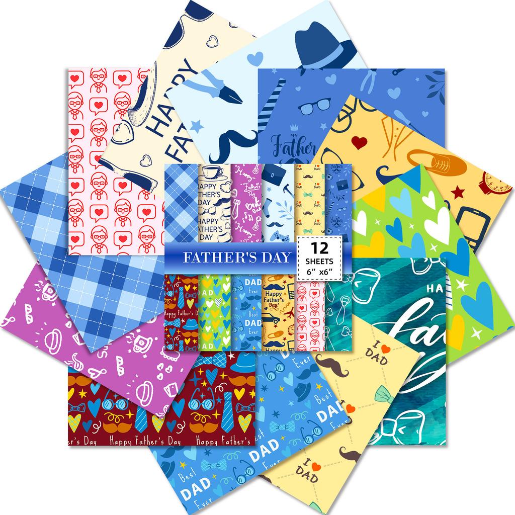 12 Pieces of Striped Father's Day Material Paper Fashion Basic Handbook DIY Background Photo Album Base Material Paper