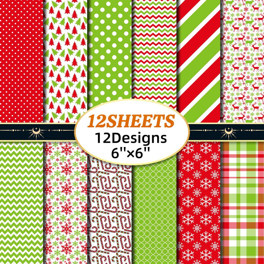 DIY Hot Sale 12 Sheets/package Handbook Material Package Color Christmas Material Paper Scrapbook Card Making Background Paper
