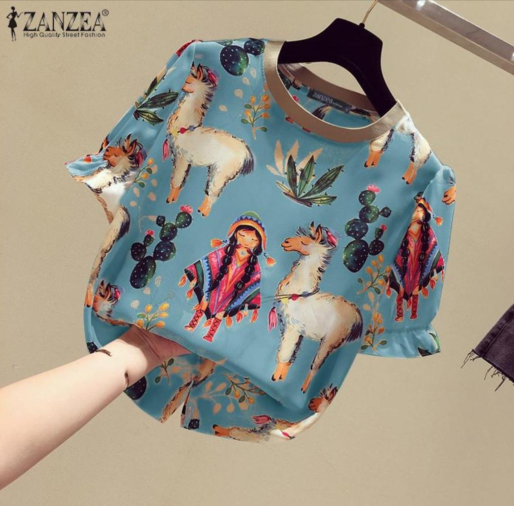 ZANZEA Women Casual O-neck Printing Half Sleeve Blouse
