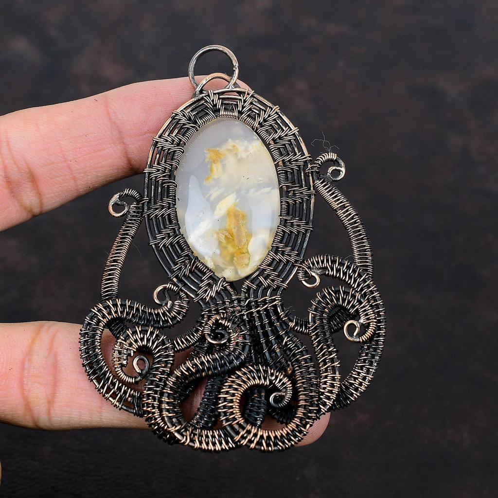 Plume Agate Pendant Copper Wire Wrapped Pendant Gemstone Octopus Jewelry Dainty Pendant Handmade Pendant Copper Wire Jewelry Engagement Gift
