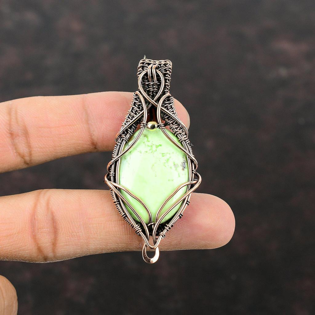 Lemon Chrysoprase Pendant Copper Wire Wrapped Pendant Gemstone Copper Jewelry Stylish Pendant Wire Wrapped Jewelry Handmade Pendant For Gift