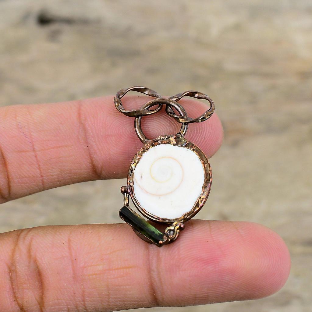 Shiva Eye Shell Pendant Electroformed Copper Pendant Green Tourmaline Rough Pendant Handmade Gemstone Pendant Electroformed Jewelry For Gift