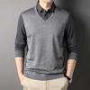 Business Lapel Fashion Striped Knitted Sweater Men's New Fake Two-Piece Knitted Sweaters Young and Middle-Aged Shirt Collar Top