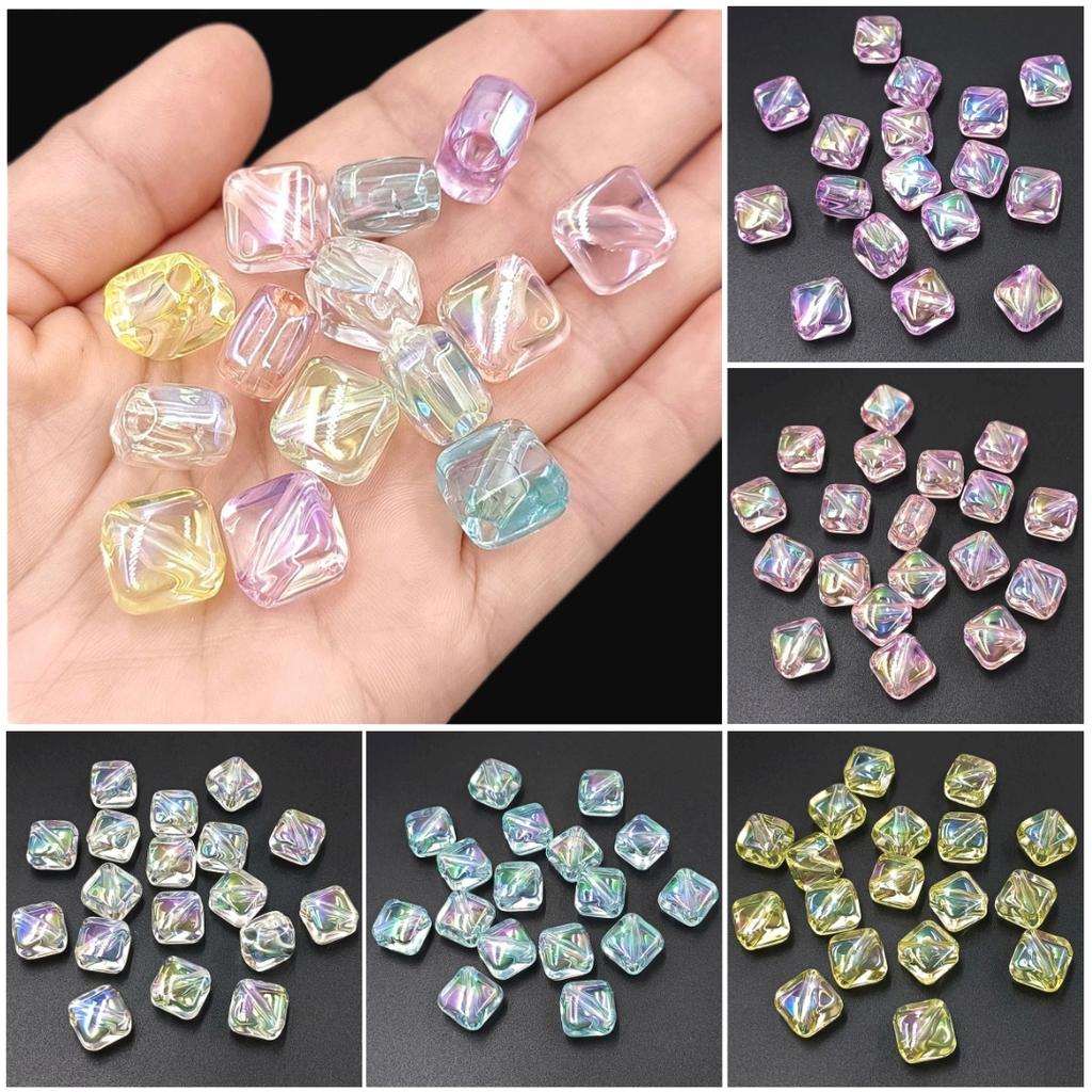 High Quality Transparent DIY Bracelet Handmade Material Jewelry Accessories Diagonal Hole Loose Beads Fashion Square Acrylic Necklace Making 10pcs