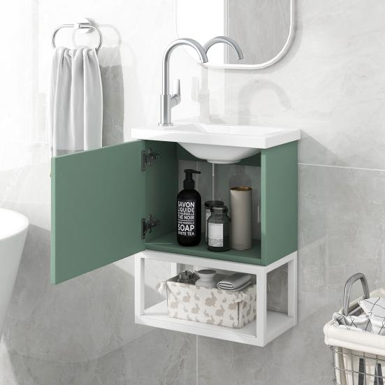 Bathroom Sink Cabinet Open Shelf Golden Handle Modern Green White Easy Assembly Solid MDF Lavatory Wall Mount Basin Vanity Cabinet
