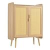 Shoe Cabinet with 2 Doors, Adjustable Shelves And Braided Rattan Design, Shoe Cabinet with Metal Handles and Solid Wood Feet