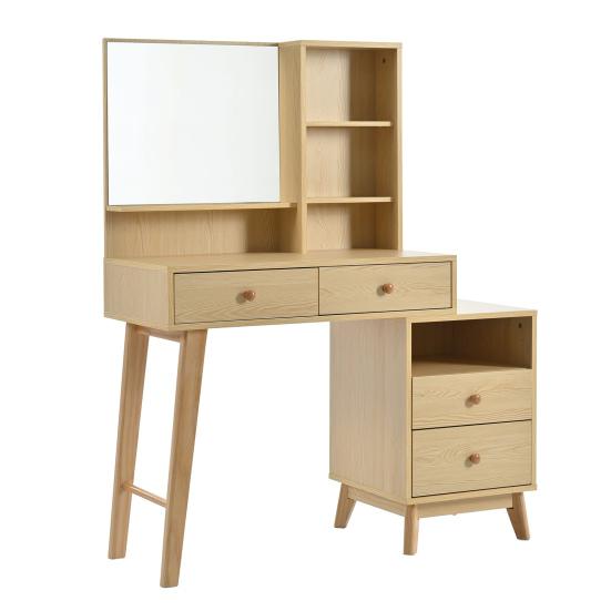 Dressing Table with Multi Drawers Big Mirror Wide Desktop Large Storage Space Smooth Surface Storing Wooden