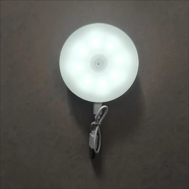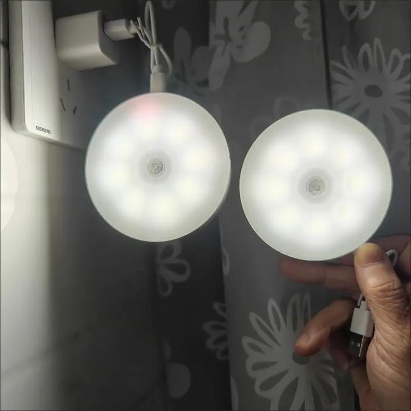 Motion Sensor Light Led USB NightLights Round Chargeable Lamp for Bedroom Kitchen Stair Hallway Wardrobe Cupboard Lighting