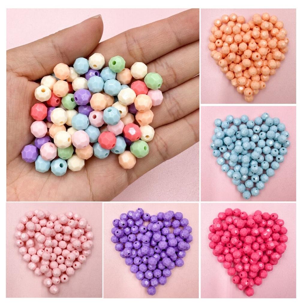 Hanmade Bracelet Gift 50pcs Bag Mobile Phone Chain Accessories Acrylic 7.5*8mm Multi-cut Solid Color Children's Necklace Round Beads