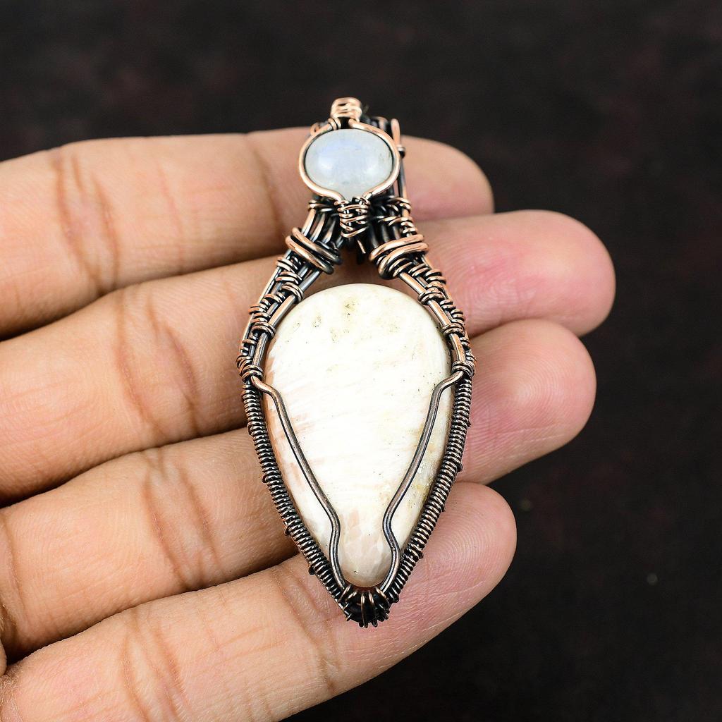 Scolecite Copper Pendant Copper Wire Wrapped Jewelry Scolecite Jewelry Rainbow Moonstone Gemstone Pendant Handmade Pendant Gift For Mother