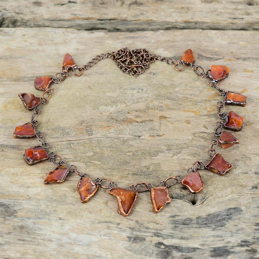 Carnelian Rough Gemstone Necklace Electroformed Copper Necklace Adjustable Chain Necklace Handmade Necklace Electroformed Jewelry For Gift