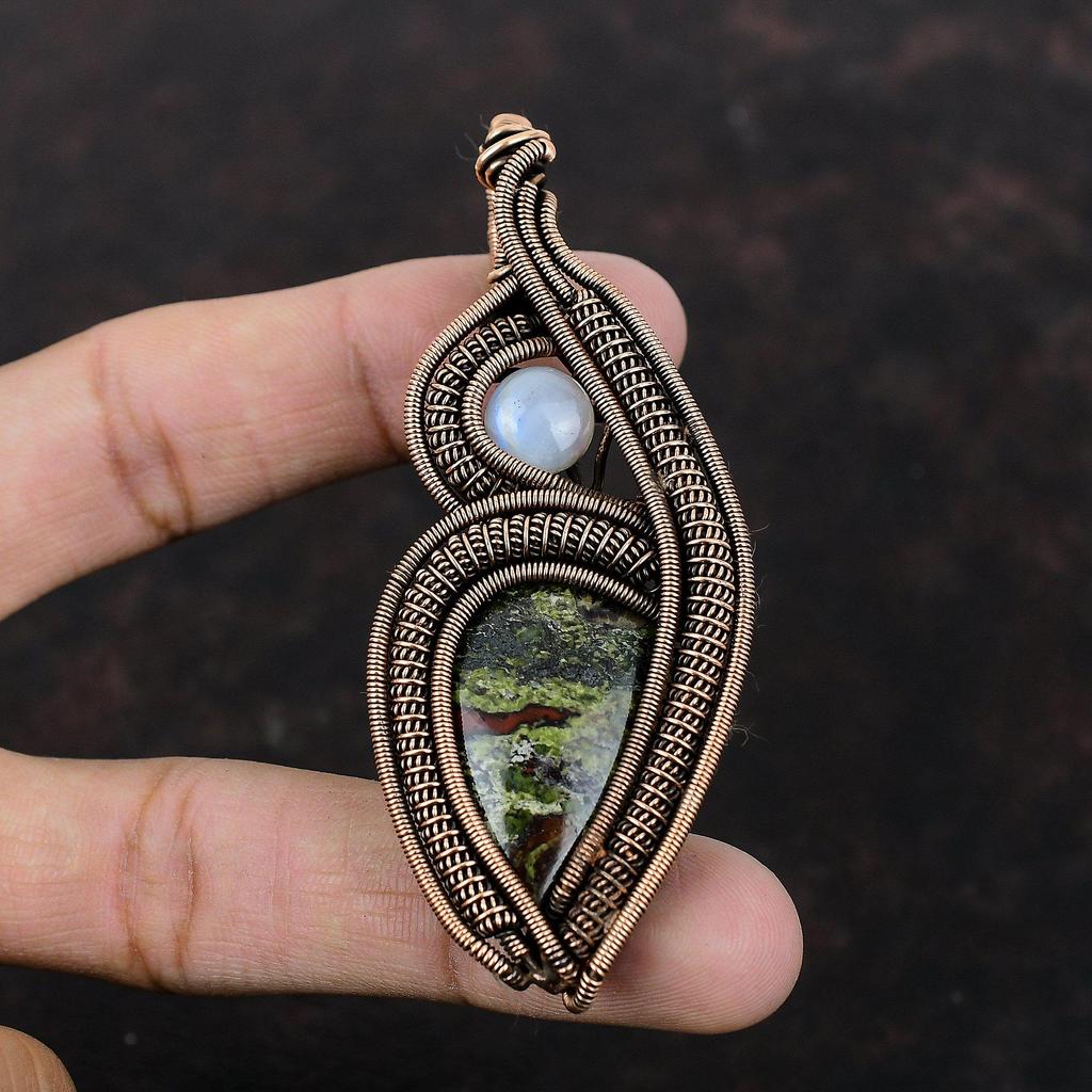 Dragon Bloodstone Gemstone Pendant Copper Wire Wrapped Jewelry Rainbow Moonstone Pendant Handmade Copper Pendant Wire Wrap Pendant For Gift