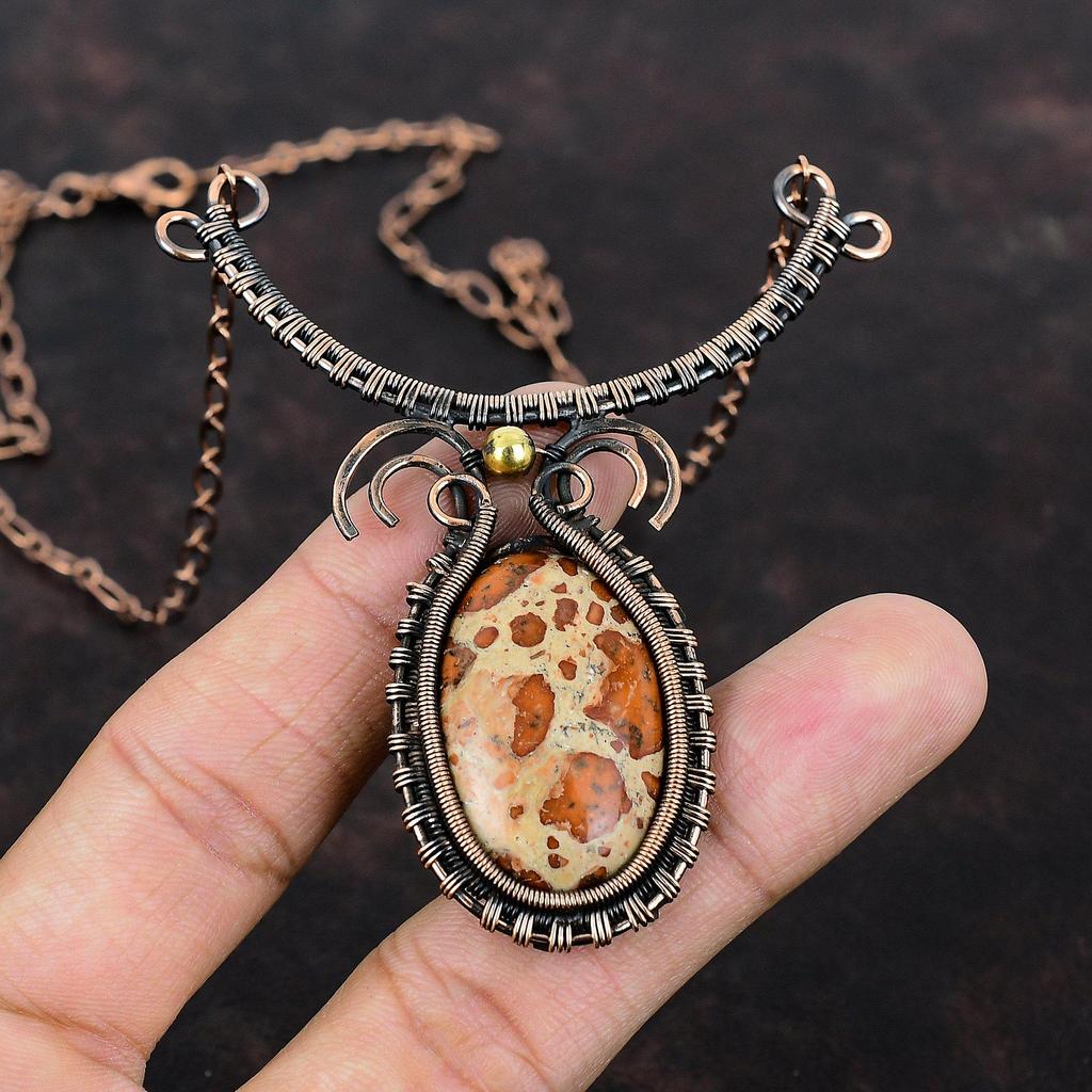 Asteroid Jasper Necklace Copper Wire Wrapped Adjustable Necklace Copper Jewelry Real Gemstone Necklace Handmade Jewelry Women's Special Gift