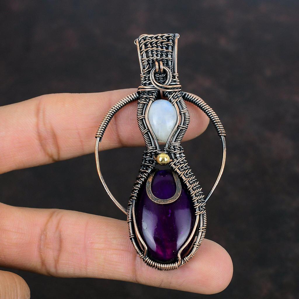 Purple Fire Labradorite Pendant Copper Wire Wrapped Jewelry Handmade Pendant Rainbow Moonstone Pendant Gemstone Copper Jewelry Gift For Wife