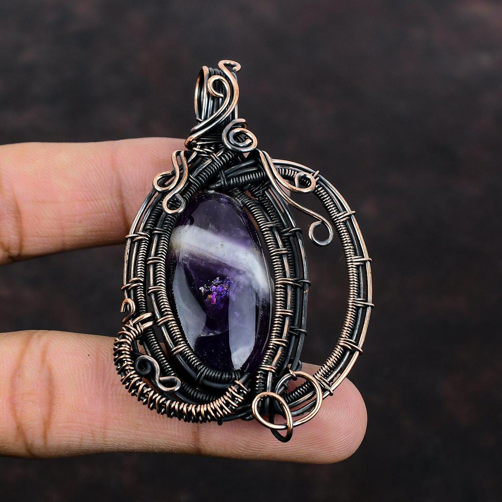 Chevron Amethyst Pendant Copper Wire Wrapped Gemstone Pendant Handmade Pendant Chevron Amethyst Copper Jewelry Ethnic Pendant Gift For Women