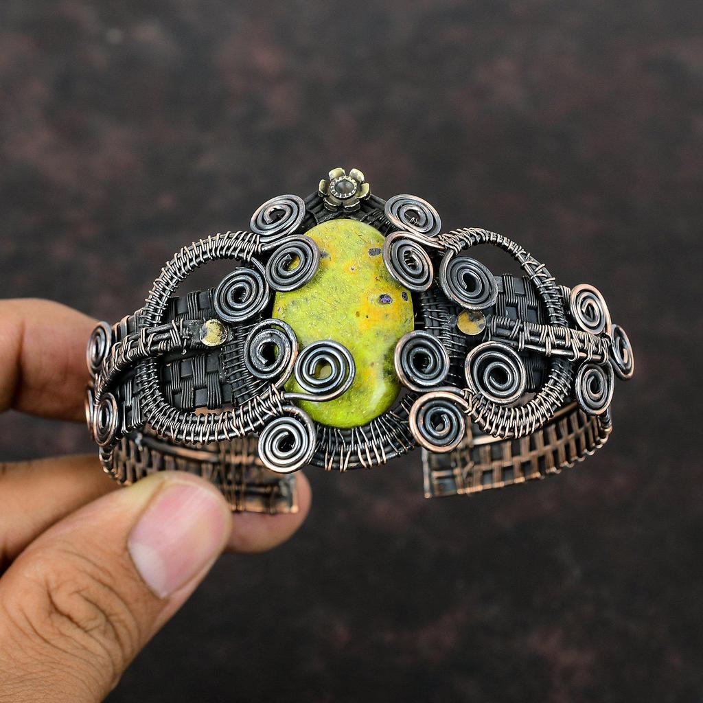 Stichtite Cuff Bracelet Copper Wire Wrapped Bangle Adjustable Cuff Bracelet Gemstone Bangle Copper Wire Jewelry Handmade Bangle Gift For Her