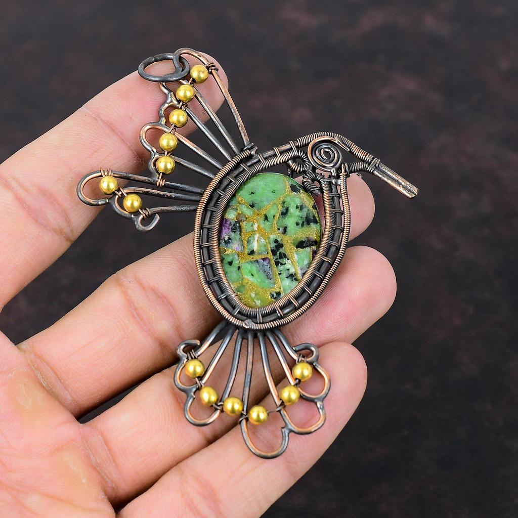 Copper Ruby Zoisite Pendant Copper Wire Wrapped Pendant Ruby Zoisite Jewelry Gemstone Pendant Handmade Bird Pendant Copper Jewelry For Gift