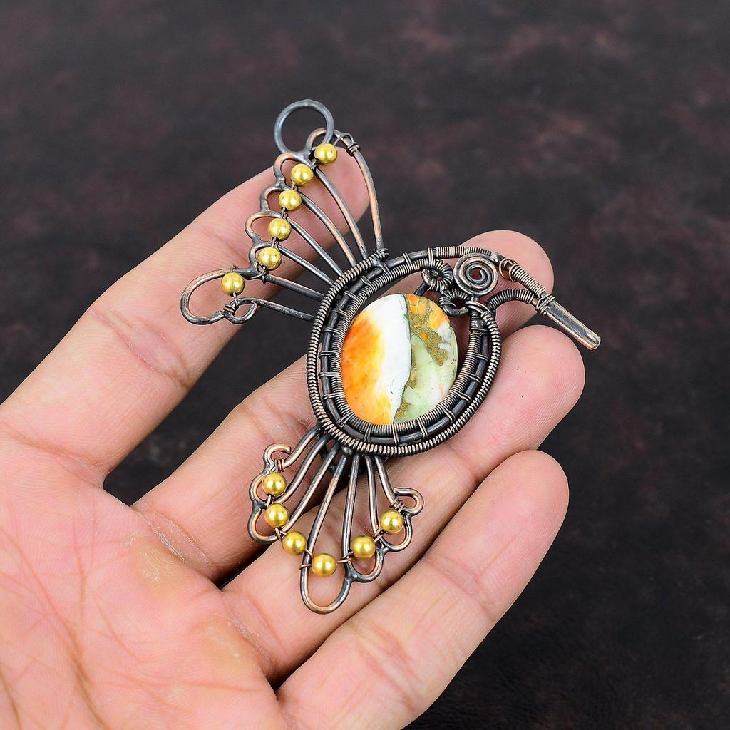 Spiny Oyster Copper Turquoise Pendant Copper Wire Wrapped Gemstone Pendant Handmade Boho Jewelry Bird Pendant Wire Wrap Jewelry Gift For Her