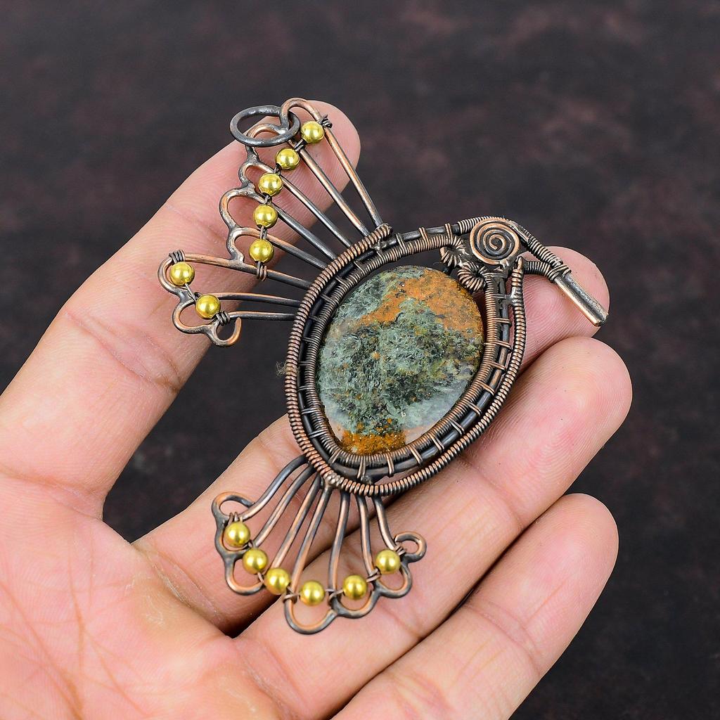 Spessartine Garnet In Limestone Pendant Copper Wire Wrapped Pendant Handmade Gemstone Pendant Copper Wire Jewelry Wedding Gift Bird Pendant