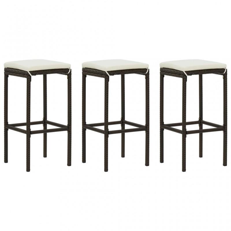 Day and Night - Day and Night Kitchen Stools with Cushions 3 Pcs Brown Synthetic Rattan