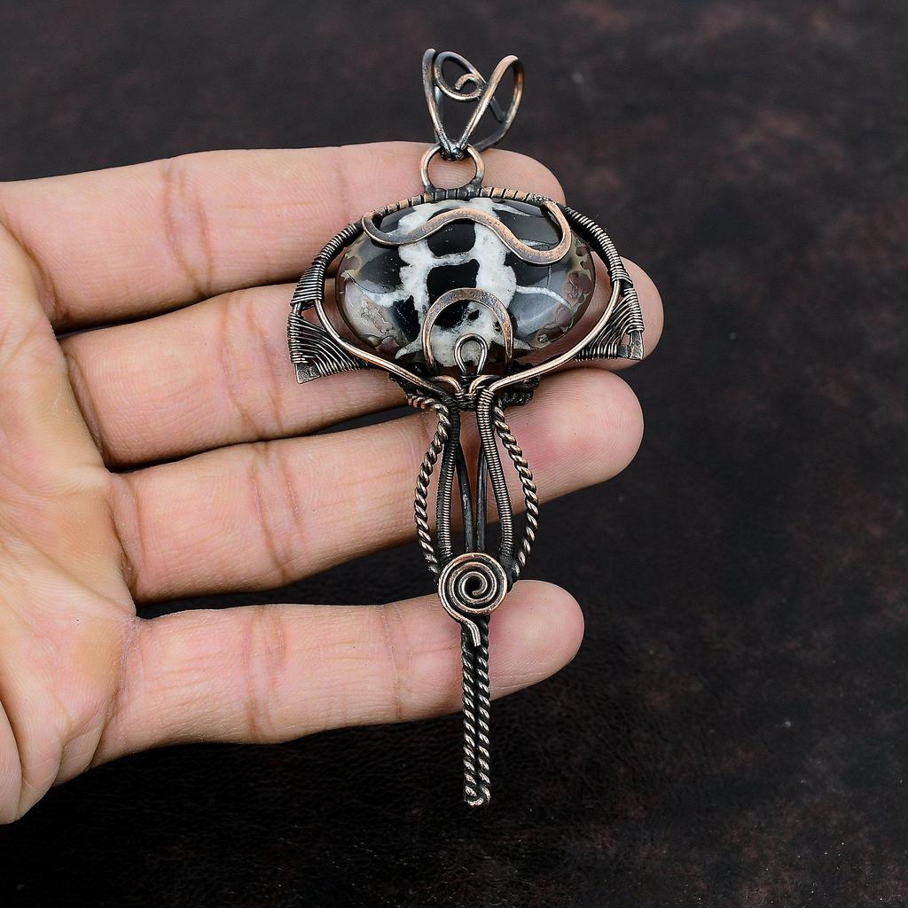 Moroccan Mud Crack Fossil Pendant Copper Wire Wrapped Pendant Handmade Copper Jewelry Pendant For Women Dainty Gemstone Jewelry Wedding Gift