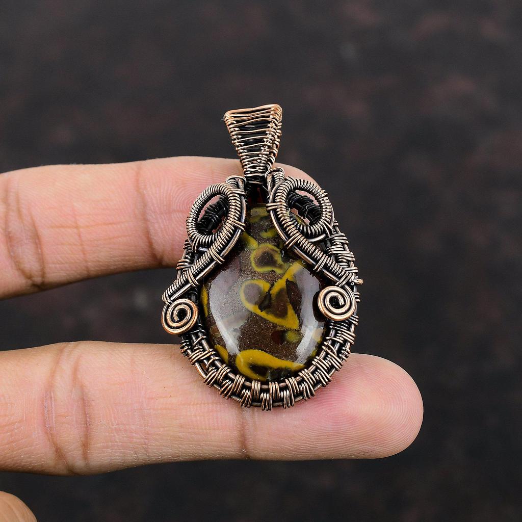 Fruit Jasper Pendant Copper Wire Wrapped Gemstone Pendant Fruit Jasper Jewelry Handmade Pendant Copper Jewelry For Gift Boho Hippie Pendant